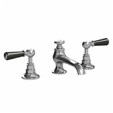 8 Inch Widespread: Lefroy Brooks, Classic 1900, Black Lever Connaught 3- Hole Basin Mixer with P.U.W CB 1105 (Formerly BL 1224)