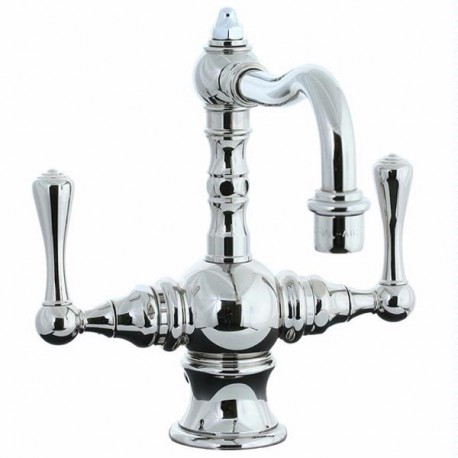 Single hole mountingSpout is 6" long x 4 3/4" highSwivel spoutIncludes pop-up drainItem shown in Polished Nickel finish.