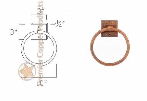 10" Hand Hammered Copper Full Size Bath Towel Ring-