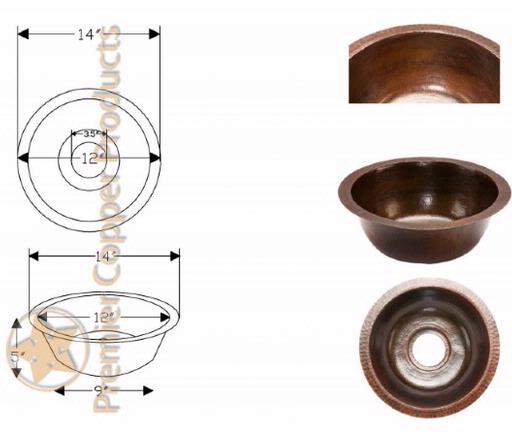 Uncompromising quality, beauty, and functionality make up this Premier 14" Round Hammered Copper Bar/Prep Sink with a 3.5" Drain Opening. Will support garbage disposal.