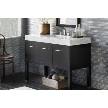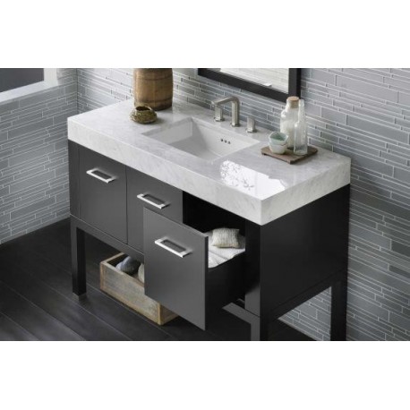 Simple. Elegant. Versatile. The Calabria vanity is designed for the way you live. Soft-close wood doors and beautiful dovetail construction are the essential features in today’s modern bathroom. With the Calabria vanity, deep full-extension drawers are ready for anything from hairspray and blow dryers to a whole family’s supply of towels. At 48”, storage will never be in short supply. Opt for stunning metal feet in either polished chrome or brushed nickel to give the Calabria vanity the ultimate “wow factor.”