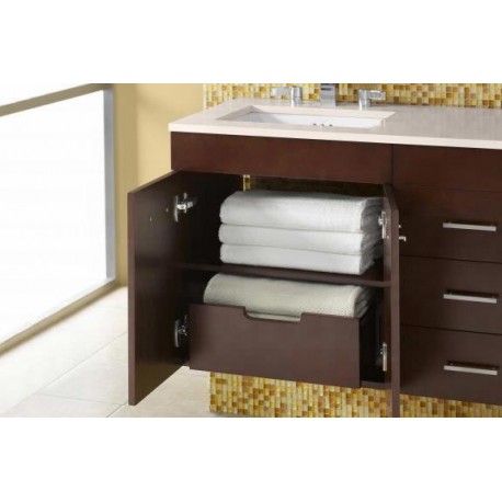 Your home is your canvas, a celebration of your personal style. Like every piece in the Wall Hung collection, the Bella provides the ultimate in design flexibility with multiple sizes, rich finishes and a wide variety of tops from the clean timeless ceramic to the contemporary Techstoneâ„¢ with sinktop and vessel options. The deep, easy to access full extension drawers beautifully complement its open and spacious design. The versatile optional shelf bridge provides additional space to hold everything from scented bath salts to bath toys