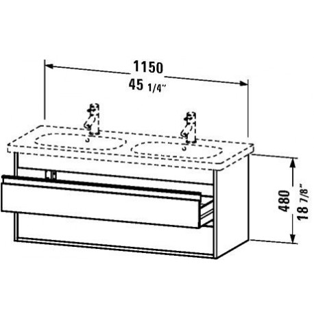 45 1/4"W x 17 7/8"D x 18 7/8"H2 drawersUpper drawer including cut-out for siphon and siphon coverPlease choose finishOptional washbasin, sold separatelyOptional space saving siphon for washbasin
