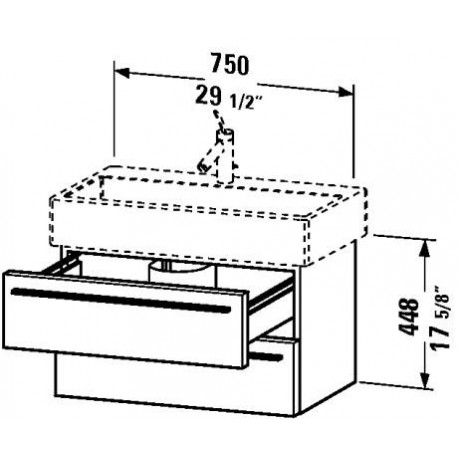 Dimensions: 29 1/2"W x 17 1/2"D x 17 5/8"H2 drawersUpper drawer including cut-out for siphon and siphon coverOptional washbasin, sold separatelyOptional space saving siphon recommended, sold separately