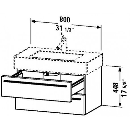 Dimensions: 31 1/2"W x 18 3/8"D x 17 5/8"H2 drawersUpper drawer including cut-out for siphon and siphon coverOptional washbasin N032985, sold separatelyOptional space saving siphon is recommended, sold separately