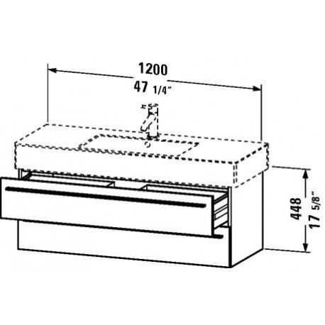 Dimensions: 47 1/4"W x 18 3/8"D x 17 5/8"H2 drawersUpper drawer including cut-out for siphon and siphon coverOptional washbasin N032912, sold separatelyOptional space saving siphon is recommended, sold separately