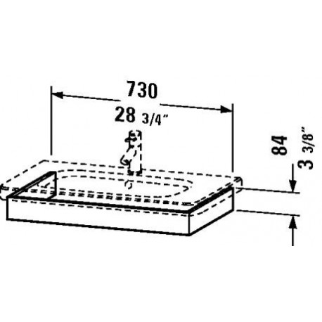 Dimensions: 22 7/8"W x 17 5/8"D x 3 3/8"HHeight of washbasin trim = 3 3/8"Mounting Hardware includedOptional washbasin, sold separately