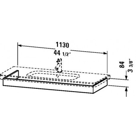 Dimensions: 44 1/2"W x 17 5/8"D x 3 3/8"HHeight of washbasin trim = 3 3/8"Mounting Hardware includedOptional washbasin, sold separately
