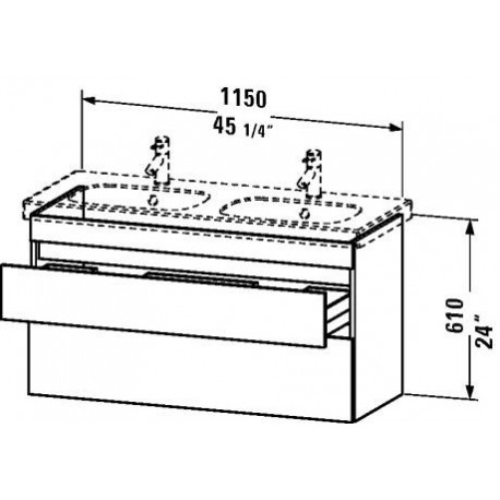 Dimensions: 45 1/4"W x 17 7/8"D x 24 3/8"H2 drawersUpper drawer including cut-out for siphon and siphon coverPlease choose front and body finishesOptional double furniture washbasin, sold separatelyOptional space saving siphon for washbasin