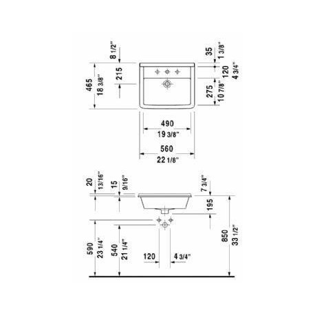 Countertop BasinDimensions: 22" x 18 1/8"With Overflow With Tap PlatformCUPC ListedSingle Hole - Model N - 030256 00 003 Hole - Model N - 030256 00 30