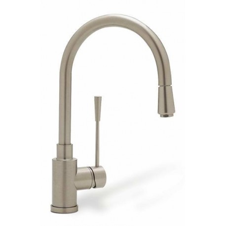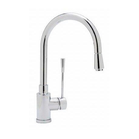 Sleek and sophisticated, this modern pillar design features an integrated double spiral pull-down stream spout and extra-long single-lever handle. Plus, the hot and cold supply lines are color-coded, making it practically effortless to install.