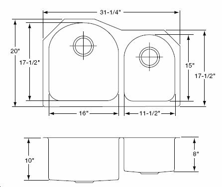 Left Bowl Dim.: 16' x 17 1/2' x 10'