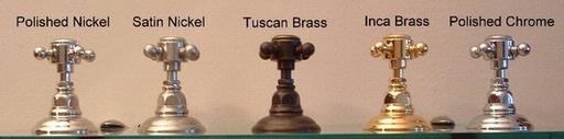 Finishes- Polished Chrome, Polished Nickel, Satin Nickel, Tuscan Brass and Inca Brass.