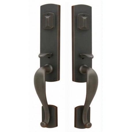 Knobs and lever handles are supported by springs mounted behind the rosettes and sideplates. These springs return the handles back to the "rest" position and prevent lever sag. Latches are heavy duty diecast construction, with strong internal springs, solid brass nose bolts and sintered metal cams. A plastic bushing located in the joint between handle and rosette ensures a friction free wear surface. This prevents metal from bearing on metal and provides smooth long-lasting operation. Handles are positively connected to rosettes with a permanent clip and each has a set screw which, when tightened, eliminates "handle wobble". The threaded tubes inside an Emtek lock are machined brass, not steel. The use of brass ensures good threads and prevents corrosion for easy installation and long life.