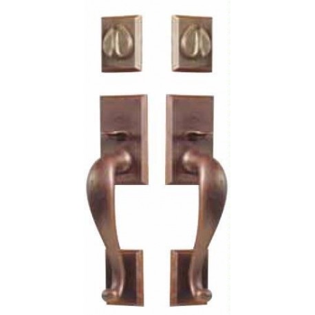 Knobs and lever handles are supported by springs mounted behind the rosettes and sideplates. These springs return the handles back to the "rest" position and prevent lever sag. Latches are heavy duty diecast construction, with strong internal springs, solid brass nose bolts and sintered metal cams. A plastic bushing located in the joint between handle and rosette ensures a friction free wear surface. This prevents metal from bearing on metal and provides smooth long-lasting operation. Handles are positively connected to rosettes with a permanent clip and each has a set screw which, when tightened, eliminates "handle wobble". The threaded tubes inside an Emtek lock are machined brass, not steel. The use of brass ensures good threads and prevents corrosion for easy installation and long life.