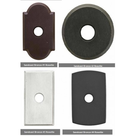 The Sandcast Bronze Collection's knob / lever handles are supported by springs mounted behind the rosettes and sideplates, which return the handles back to the rest position and prevent lever sag. The latches are heavy-duty die cast construction, with strong internal springs, solid brass nose bolts, and sintered metal cams. A plastic bushing located in the joint between the handle and the rosette ensures a friction-free wear surface, preventing metal from bearing on metal and providing smooth, long-lasting operation. Handles are positively connected to rosettes with a permanent clip. Each has a set screw which eliminates "handle wobble" when tightened. Emtek's threaded tubes are machined brass to ensure good threads and prevent corrosion