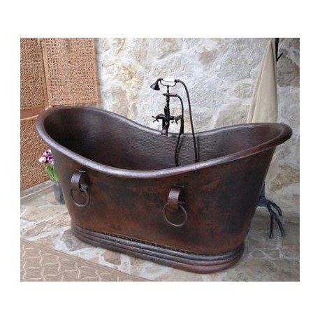 72"x 33"x 31.5"14 gauge copperFreestandingRings, front and back70 gallon capacityHand hammered only. Note: Available in Satin Nickel finish - please call for pricing.