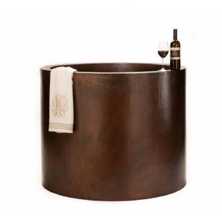 Premier 45" Round Hammered Copper Japanese Ofuro Style Soaking Tub.