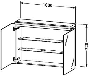 Mirror CabinentDimensions: 10 3/8" x 39 3/8"1 lamp Fluorescent 18W T4 2 mirror doors2 glass shelvesWidth 47 1/4" (opened)Wooden underfloor