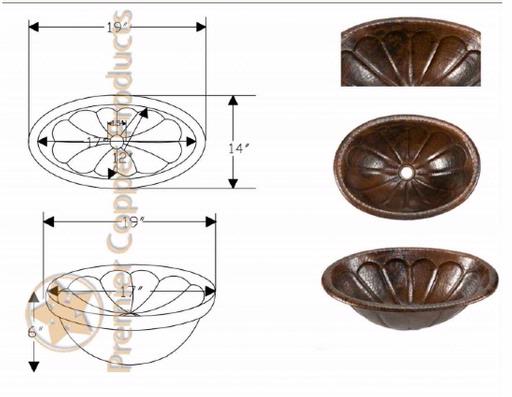 Oval Sunburst Self Rimming Hammered Copper Sink-