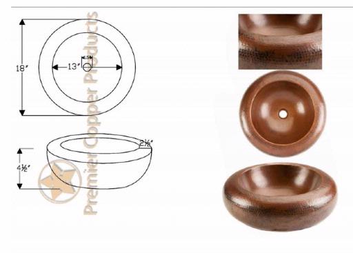 Outer Dimension: 18" x 4.5"Inner Dimension 13" x 4.5"Drain Size: 1.5" Non-Overflow17 Gauge Copper Double Walled - Hammered Copper Surface Oil Rubbed Bronze color