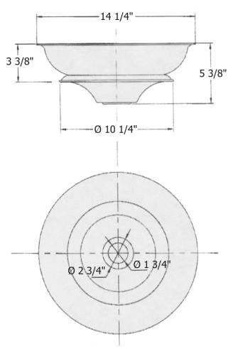 Size: 14 1/8" Ø x 5 1/4" DCut-out size: Approx. 8" ØRecessed base, bowl sits 3 3/8" above counter