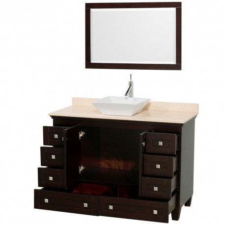 48 inch Single Bathroom Vanity in Espresso, Ivory Marble Countertop, Pyra White Sink, and 24 inch Mirror