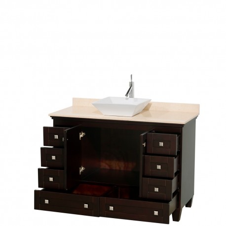48 inch Single Bathroom Vanity in Espresso, Ivory Marble Countertop, Pyra White Sink, and No Mirror