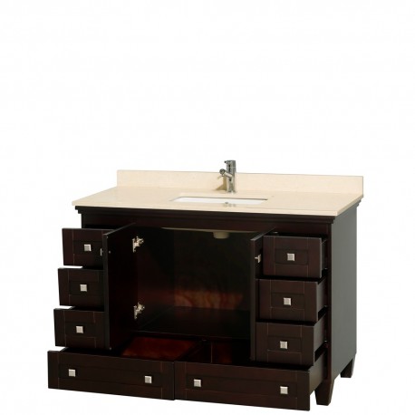 48 inch Single Bathroom Vanity in Espresso, Ivory Marble Countertop, Undermount Square Sink, and No Mirror