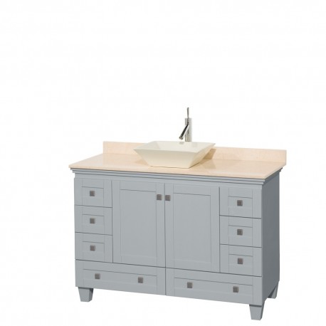 48 inch Single Bathroom Vanity in Oyster Gray, Ivory Marble Countertop, Pyra Bone Porcelain Sink, and No Mirror
