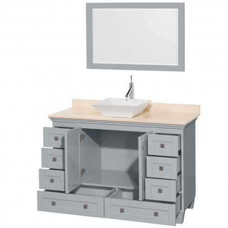 48 inch Single Bathroom Vanity in Oyster Gray, Ivory Marble Countertop, Pyra White Porcelain Sink, and 24 inch Mirror