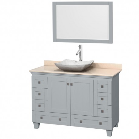 48 inch Single Bathroom Vanity in Oyster Gray, Ivory Marble Countertop, Avalon White Carrera Marble Sink, and 24 inch Mirror