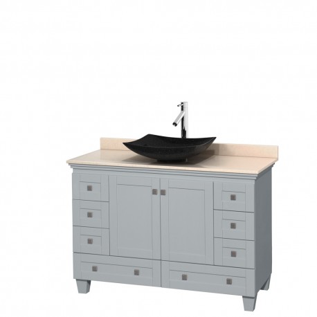 48 inch Single Bathroom Vanity in Oyster Gray, Ivory Marble Countertop, Arista Black Granite Sink, and No Mirror