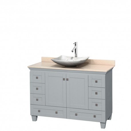 48 inch Single Bathroom Vanity in Oyster Gray, Ivory Marble Countertop, Arista White Carrera Marble Sink, and No Mirror