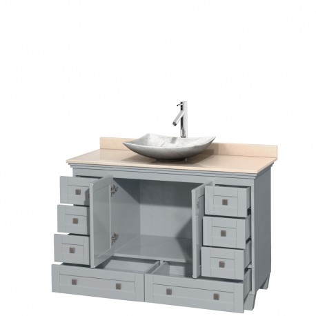 Sublimely linking traditional and modern design aesthetics, and part of the exclusive Wyndham Collection Designer Series by Christopher Grubb, the Acclaim Vanity is at home in almost every bathroom decor. This solid oak vanity blends the simple lines of traditional design with modern elements like vessel sinks and brushed chrome hardware, resulting in a timeless piece of bathroom furniture. The Acclaim is available with a White Carrera or Ivory marble counter, porcelain vessel sinks, and matching mirrors. Featuring soft-close door hinges and drawer glides, you'll never hear a noisy door again. Meticulous attention to detail on this beautiful vanity is second to none and is sure to be envy of your friends and neighbors.
