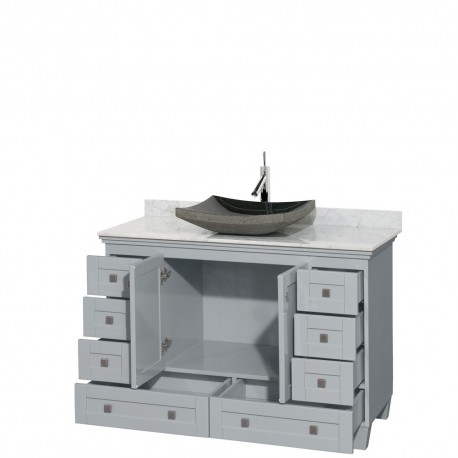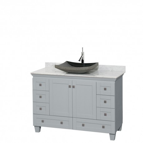 48 inch Single Bathroom Vanity in Oyster Gray, White Carrera Marble Countertop, Altair Black Granite Sink, and No Mirror