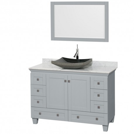 48 inch Single Bathroom Vanity in Oyster Gray, White Carrera Marble Countertop, Altair Black Granite Sink, and 24 inch Mirror