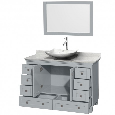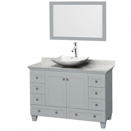 48 inch Single Bathroom Vanity in Oyster Gray, White Carrera Marble Countertop, Arista White Carrera Marble Sink, and 24 inch Mirror