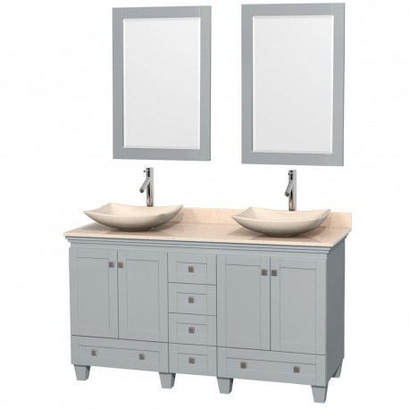 60 inch Double Bathroom Vanity in Oyster Gray, Ivory Marble Countertop, Arista Ivory Marble Sinks, and 24 inch Mirrors