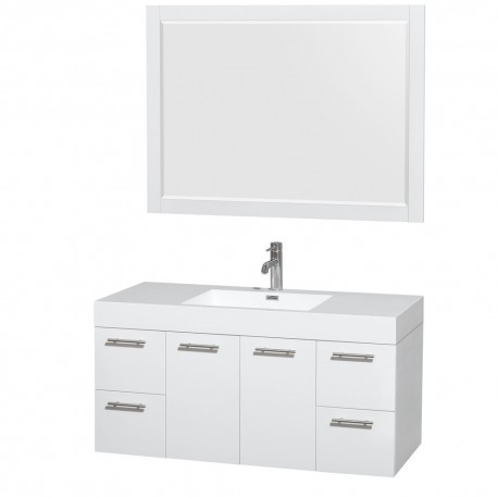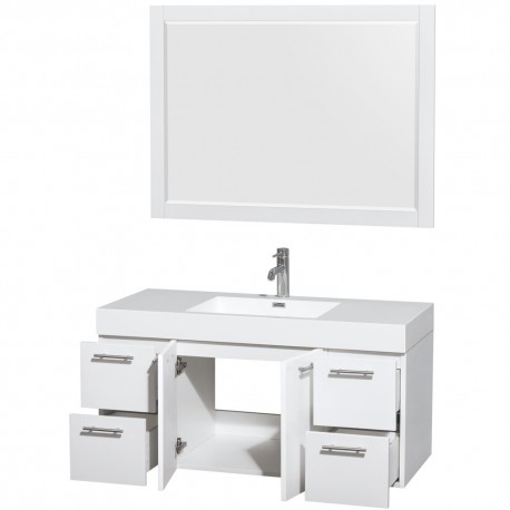 48 inch Single Bathroom Vanity in Glossy White, Acrylic Resin Countertop, Integrated Sink, and 46 inch Mirror