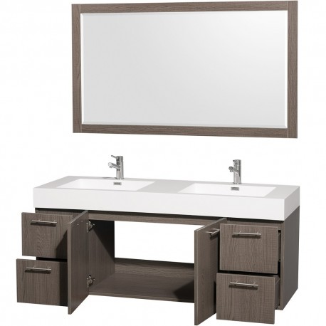 60 inch Double Bathroom Vanity in Gray Oak with Acrylic Resin Top, Integrated Sinks, and 58 inch Mirror