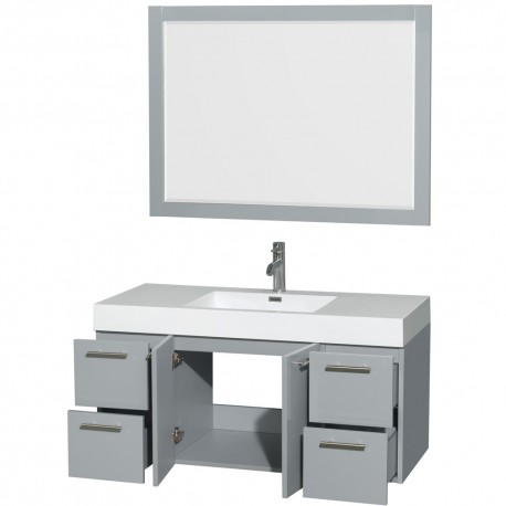 48 inch Single Bathroom Vanity in Dove Gray, Acrylic Resin Countertop, Integrated Sink, and 46 inch Mirror