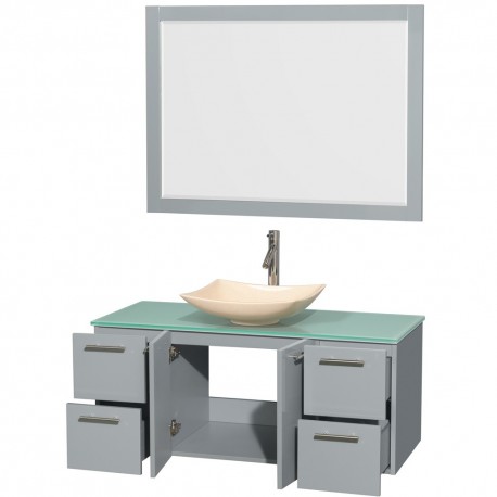 48 inch Single Bathroom Vanity in Dove Gray, Green Glass Countertop, Arista Ivory Marble Sink, and 46 inch Mirror