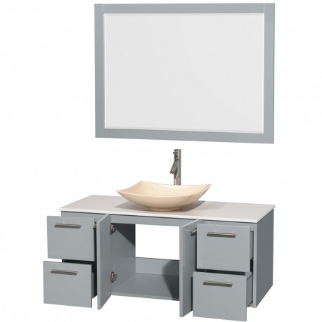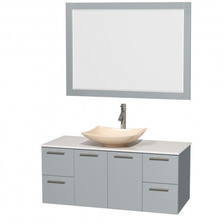 48 inch Single Bathroom Vanity in Dove Gray, White Man-Made Stone Countertop, Arista Ivory Marble Sink, and 46 inch Mirror