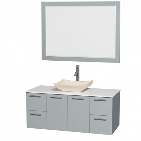 48 inch Single Bathroom Vanity in Dove Gray, White Man-Made Stone Countertop, Avalon Ivory Marble Sink, and 46 inch Mirror