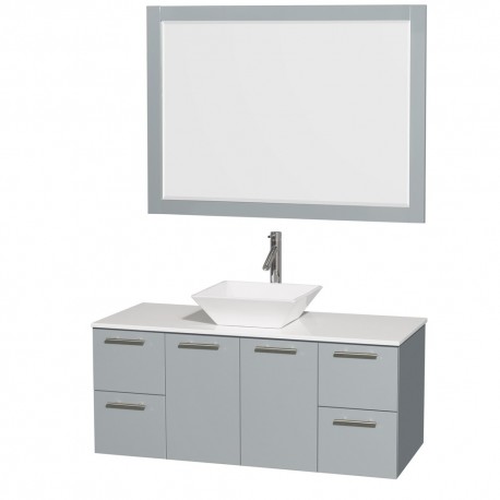 48 inch Single Bathroom Vanity in Dove Gray, White Man-Made Stone Countertop, Pyra White Porcelain Sink, and 46 inch Mirror