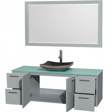 60 inch Single Bathroom Vanity in Dove Gray, Green Glass Countertop, Altair Black Granite Sink, and 58 inch Mirror