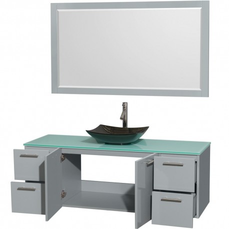 60 inch Single Bathroom Vanity in Dove Gray, Green Glass Countertop, Arista Black Granite Sink, and 58 inch Mirror