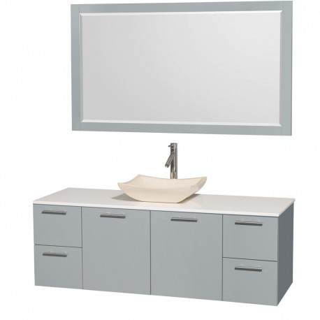 60 inch Single Bathroom Vanity in Dove Gray, White Man-Made Stone Countertop, Avalon Ivory Marble Sink, and 58 inch Mirror
