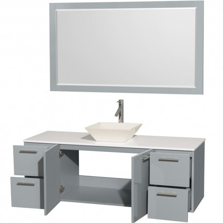 60 inch Single Bathroom Vanity in Dove Gray, White Man-Made Stone Countertop, Pyra Bone Porcelain Sink, and 58 inch Mirror